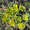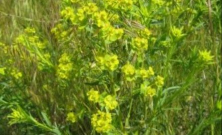 Leafy spurge has an extensive lateral root system and clusters of small yellowish-green flowers growing to 80 cm tall. Leafy spurge has shown to be extremely invasive in many habitats with infestations becoming very dense. The milky latex is toxic to some livestock and this species generally increases on heavily grazed lands.