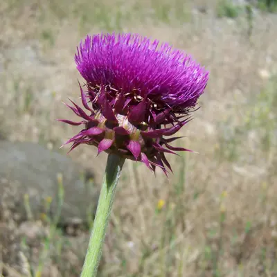 Nodding thistle is native to Europe and Asia and was introduced into North America in the early 1900s as a seed contaminant (Ball et al, 2006). It is an herbaceous biennial that can grow up to 1.5m tall. It produces a long fleshy taproot and from one to several erect and highly branched stems. The stems are spiny and winged except below the flower head. The leaves are deeply lobed and alternate on the stem. A single large pink/purple flower head is produced at the tops of the branches. The flower heads tend to droop down or “nod” at maturity (Cranston et al. 2005). This plant is often confused with Plumeless thistle.