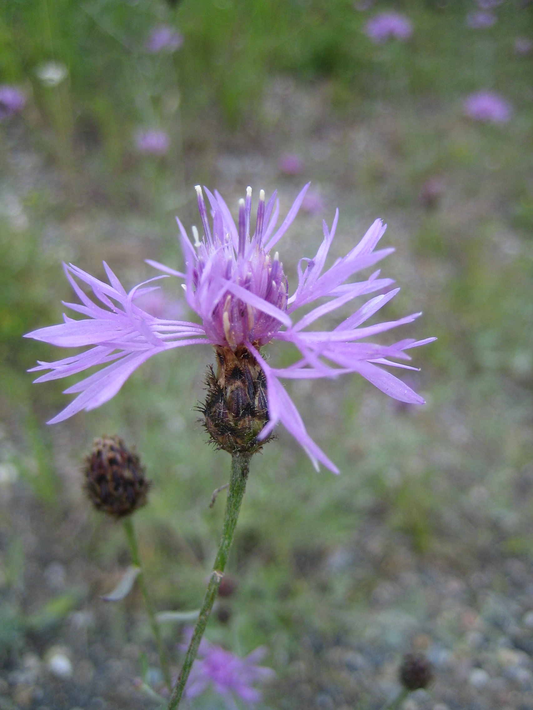 The first record of spotted knapweed on the continent is from Victoria, British Columbia in 1883. Spotted knapweed may grow to more than one metre in height. It is less branched than diffuse knapweed and usually has darker, red-purple flowers.
