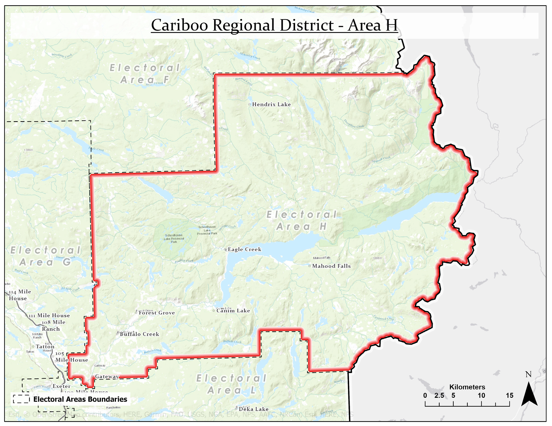 Area H residents are spread out among the communities of Canim Lake, Forest Grove, Ruth Lake, Hawkins Lake, and Gateway. The large number of recreational properties sees population numbers rise and fall seasonally. Land Area: 2,603 sq. km